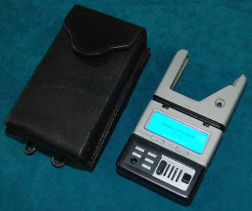 An electronic scrambling device component featured in the Star Trek: Voyager episode, “Threshold” in which “Captain Janeway” (Kate Mulgrew) and “Tom Paris” (Robert McNeill) were transformed into Transwarp Humans. The device is made of brushed aluminum on a black acrylic base with black acrylic accents and gold colored metal detail. … |