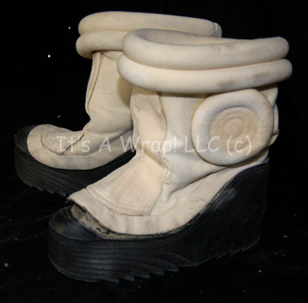 A pair of white colored boots corresponding to a Starfleet engineer’s white radiological suit like those appearing in feature films Star Trek I: The Motion Picture through Star Trek VI: The Undiscovered Country. The boots are ‘Saba Oslo’ name brand and ‘Made in Italy’ with thick black soles and multiple … |