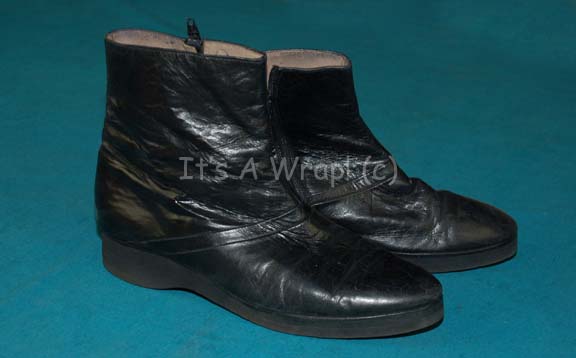 A pair of black leather men’s boots appearing variously in Star Trek episodic television and/or feature films and are compatible with generally any Starfleet uniform. The boots are used Vibram name brand, have no actor’s name, but are in very good condition showing very minor wear on the heels. |