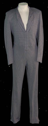 A costume featured in the Star Trek: Deep Space Nine episode “Tribunal” for wear by a child member of the Cardassian jury. The costume is made up of gray ruffled trousers that match the sleeves of the over dress which is built of neoprene components, black with a square patterned, … |