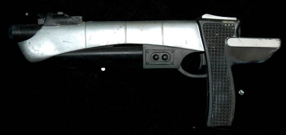 A prop weapon featured in the Star Trek: Enterprise episode “Detained”; wherein “Captain Archer” (Scott Bakula) and “Ensign Mayweather” (Anthony Montgomery) accidentally stray into a militarized zone, are taken into custody by a race called the Tandarans, and imprisoned along with a number of Suliban. This item is a rubber … |