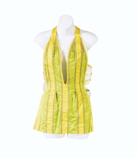 (Paramount, 1987-94) A Klingon costume originally constructed for the Star Trek feature films and later re-used in Star Trek: TNG and Star Trek: DS9. The costume is comprised of a leather jacket with fur sleeves featuring Klingon insignia and communicator badge, grey pleated spandex pants, leather boots with toe spikes, … |
