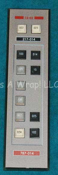 A piece of set dressing similar to those featured in various episodes of Star Trek: Enterprise. This item is a piece of smoked acrylic with beveled edges, a gray, graphical application attached featuring multicolored, rubber, faux buttons with numerical values, and arranged in groups of one or two. The item … |