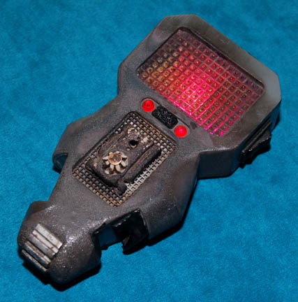 A distressed TNG-style prop medical scanner made for use on the Star Trek: The Next Generation series. The scanner is made of resin painted gray and black to appear burned with metal components added for detail. A small button on the side activates two sequentially flashing red LED lights in … |