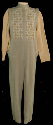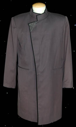 A costume featured in the Star Trek: The Next Generation episode “Up the Long Ladder”; wherein the “Enterprise-D” finds two vastly divergent colonies that much band together for their continued survival. The item is a long-sleeved, dark-gray robe/jacket featuring black piping around the collar, cuffs and down the front, a … |