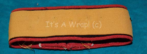 A costume accent for a crewman’s grade Starfleet uniform like those appearing variously in Star Trek feature films like Star Trek II: The Wrath of Khan and Star Trek VI: The Undiscovered Country. The item is a yellow fabric layer with a black felt backing and red trim lines bordering. … |