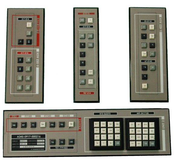 A collection of four panels from the Enterprise NX-01 corridor, used during the Star Trek: Enterprise series. All the panels have an assortment of raised simulated buttons and different colored control labels for identification. The largest panel also has two additional raised number pads. All are made from black opaque … |