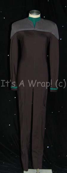 A Starfleet uniform in the style that made its first appearance in Star Trek VIII: First Contact and was made for wear by Gates McFadden as “Dr. Beverly Crusher”. This costume is comprised of a full-length black jumpsuit with gray quilted shoulders, black elastic stirrups at the feet, a form … |