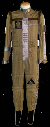 A costume featured in Star Trek IV: The Voyage Home for wear by a member of the Federation Security Council. The costume is an elaborate olive colored jumpsuit with a zip up the center front hidden by a Velcro flap that matches the reflective accents throughout. The costume also features … |