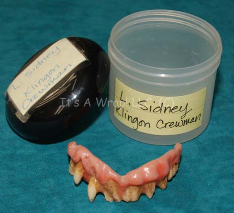 A set of special effects teeth created for use in the Star Trek: Enterprise episode “The Expanse” by ‘L. Sidney’ in his portrayal of a Klingon helmsman on “Duras’” Bird-of-Prey. The item is a set of pink gums and gnarly looking teeth, discolored to fit the theme of Klingon characters, … |