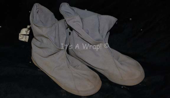A pair of fabric covered shoes created to appear as Starfleet uniform shoes in Star Trek I: The Motion Picture. The shoes are size 9 men’s shoes with fabric and straps made to wear inside the costume pant leg thus creating a seamless appearance. |