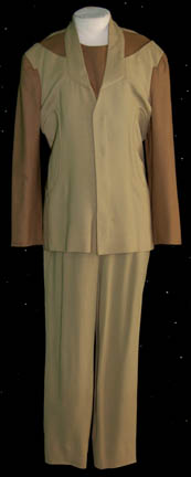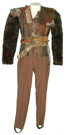 This incredible Klingon costume was made for Star Trek: Enterprise. The jacket is made of brown leather with black leather trim. The sleeves are imitation fur with more fur added around the neck and back. Multiple pieces of roughly cut leather have been attached to both sides of the jacket … |