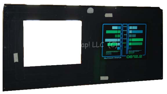 A piece of set dressing similar to those featured in various Star Trek feature films like “Final Frontier” and the sequences of “Generations” aboard the “Enterprise-B”. This item is a rectangular piece of flexible plexiglass featuring a graphical application of a multi-colored, horizontal bar graph with various numerical values and … |