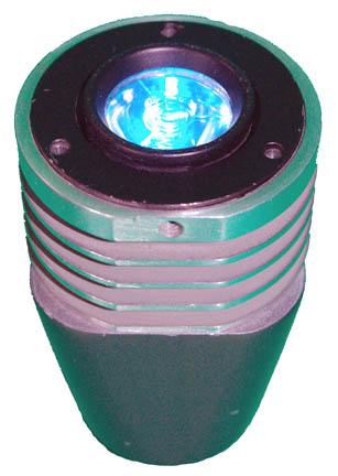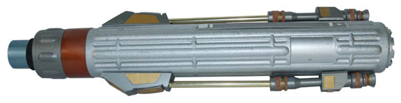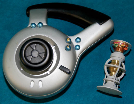A visual effects model of cast resin and acrylic plastic, with fixed bottom-mounted rod used to attach model to motion-control equipment for visual effects filming, removable panel to midsection used to conceal access to electrical connections -- <I>36x25x10in.</I> -- used in several episodes <I>Star Trek: The Next Generation</I> and <I>Star … |