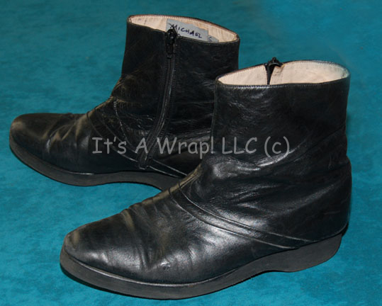 A pair of black leather men’s boots appearing variously in Star Trek episodic television and/or feature films and are compatible with generally any Starfleet uniform. The boots are used Vibram name brand footwear with multiple tags applied to the interior and a name inscription penned into them reading ‘Jeffrey’, the … |