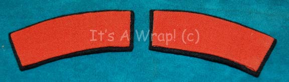 A pair of engineering red division-rank strips like those featured on Starfleet uniforms in Star Trek I: The Motion Picture. The item is red fabric on a black felt backing. This style of division-rank strip would have appeared on Starfleet Class-B, C, and D uniforms. Only during this feature film … |