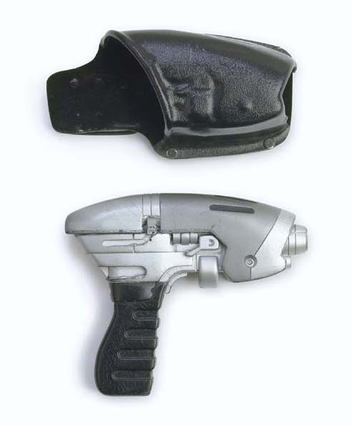 A prop phase pistol made from rubber painted silver and black with a holster clip made from vacuum-formed sheet plastic -- used in <I>Star Trek: Enterprise</I> (2) |