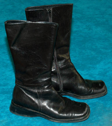 Finally located, a pair of black ladies boots for wear with Starfleet uniforms featured in episodes of Star Trek: Enterprise. These ‘Charles David' name brand boots are shiny, half calf length with subdued heels and inner zips and feature sewn in name brand tags with actor’s names penned onto them … |