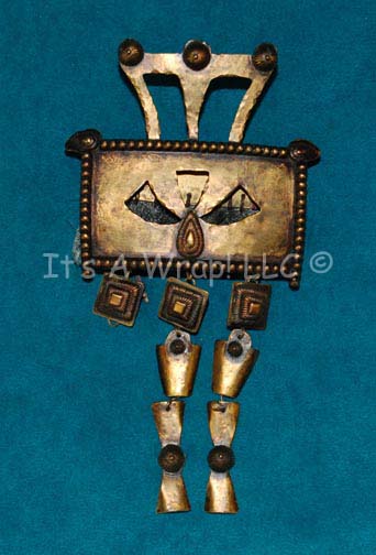A costume element featured in various Star Trek feature films and in episodic television. This item is a hand band for wear by various female Klingon actresses, it is consists of a rectangular, brass-colored piece of beaten metal with textured trim, symmetrical pieces carved out for aesthetic effect, and two … |
