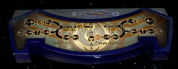 A purple metallic purple and gray console interface used in various episodes featuring Andorian characters during Star Trek: Enterprise. This item is made from wood and acrylic components with electrical connections and lights attached. The acrylic interface features an ‘Andorian' application on its reverse side which is to be back … |