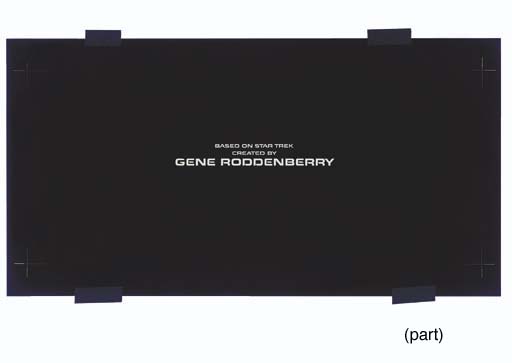 Photographic artwork used in the production of the main title sequence of <I>Star Trek II: The Wrath of Khan</I>, high-contrast black-and-white sheet film negatives, most mounted on large -- <I>12in.</I>-- acetate animation cels for photography on an animation stand, includes art for the show's title, as well as cast and … |