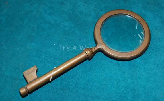 A piece of set dressing believe dot have been featured in the quarters of “Travis Mayweather” (Anthony Montgomery) in various episodes of Star Trek: Enterprise. This item is a tarnished brass magnifying glass with what appears to be a key shape on the handle end. The item measures approx. 10 … |