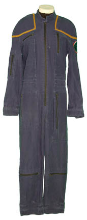 A Starfleet uniform jumpsuit including the famous ‘Enterprise NX-01' left shoulder patch with gold command division trim around the shoulders. “Enterprise” costumes feature multiple zippered pockets, Velcro size adjustments at the wrist and ankles, and come complete with a black undershirt (this one a long sleeved tee). |