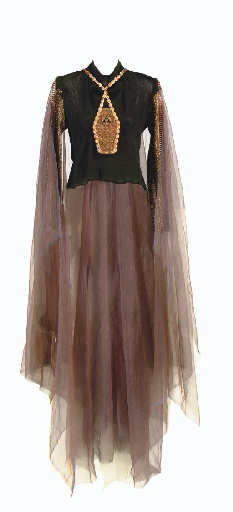 A black knit dress bodice with metallic gold sleeves and chiffon cape with a metallic gold-colored hanging neck piece -- worn by Celia Lovsky as T'Pau, the Vulcan matriarch, in "Amok Time" in <I>Star Trek: The Original Series</I> (3) |