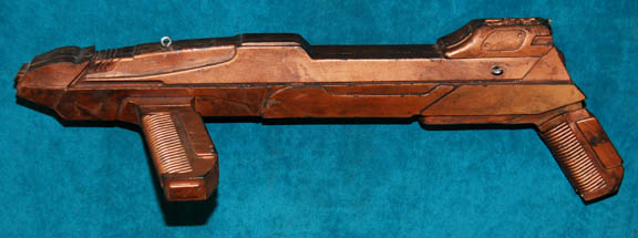 A prop molded foam rubber Ferengi disruptor rifle featured in the Star Trek: Enterprise episode “Acquisition”. The item is painted metallic copper and features a pair of screwed in shoulder strap mounts. The right hand grip is loose and squishy while the rest of the item is fairly sturdy. Definitely … |