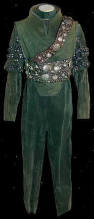 A costume featured in the Star Trek: Voyager episode "Blood Fever" where "B'lanna Torres" (Roxann Dawson), "Neelix" (Ethan Phillips), and "Lieutenant Paris" (Robert Duncan McNeil) are stuck on a planet while Torres is plagued by undeniable mating instincts forced upon her by a Vulcan crewmember. The costume is the uniform … |