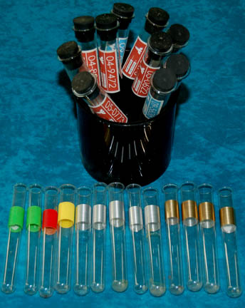 A set of props similar to those featured in various episodes of Star Trek: Enterprise for use by “Dr. Phlox” (John Billingsley) in sickbay. This lot includes a total of ten test tubes all with rubber stoppers and featuring Starfleet inventory stickers with individual serial numbers on each, a small … |
