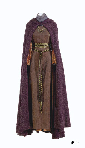 | (Paramount TV, 1995-2001) This costume consists of a burgundy and black Starfleet-issue Command duty uniform with internal “Voyager” label in the collar handwritten “Kate Mulgrew”, together with the Velcro-backed comm. badge in Starfleet insignia and a zipper-back grey turtleneck undertunic (missing one ranking button) also with “Voyager” label handwritten “Kate … |