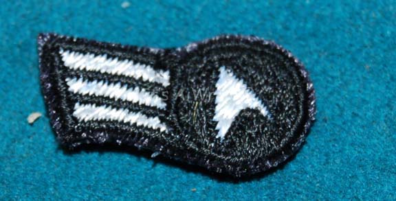 A costume element like those featured in various episodes of Star Trek: Enterprise for wear on the Starfleet uniforms. This item denotes the wearer as the non-commissioned rank of ‘Crewman 1st Class’ and features a white Starfleet emblem with further white ‘rank’ stripes on a black background. |
