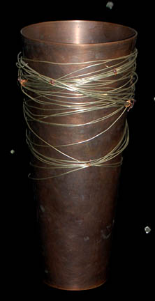 A copper colored metal vase used as set dressing in various Star Trek episodes. This item features affixed silver colored metal wire artistically placed around the item and a ‘Paramount Pictures' inventory application is present on the bottom of the item. This item measures approx. 11 X 4.75 inches in … |