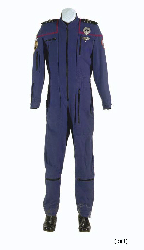 Two costumes worn by Connor Trinneer as the evil mirror version of Charles "Trip" Tucker III in "In A Mirror, Darkly", <I>Star Trek: Enterprise</I>, comprising: an <I>NX-01</I>-style Starfleet uniform jumpsuit with black undershirt, "skull-and-crossbones" Mirror Enterprise shoulder patch, Terran Empire patch, shoulder boards and medals; and a <I>Star Trek: Original … |