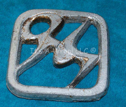 A Klingon unit badge like those featured variously in Star Trek episodic television. The item is made from molded rubber to keep from breaking in production use and painted metallic silver. It is a made to be affixed to Velcro backing or stitched onto the sleeve of Klingon warrior costume … |