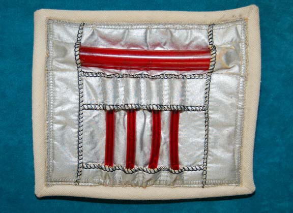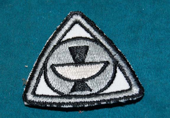 A Starfleet costume assignment patch like those appearing exclusively in Star Trek I: The Motion Picture on the set of the Epsilon IX station. The item is a triangular shaped patch with a graphic of an array centered in silver thread. The silver background color of the patch indicates the … |