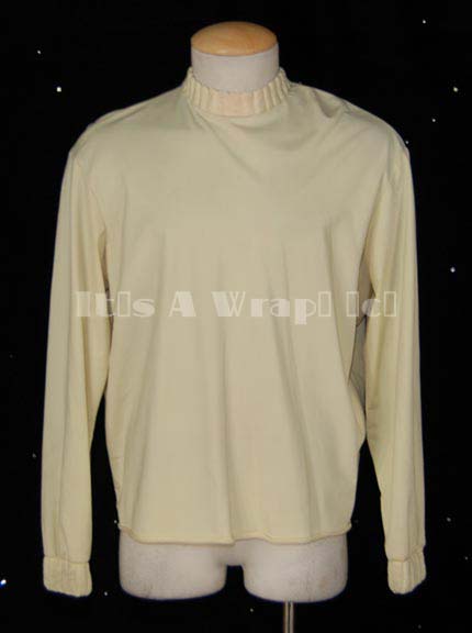 A costume item featured in various Star Trek feature films from “The Wrath of Kahn” to the opening scenes of “Generations. This item is a tan, sleeveless, Starfleet uniform undershirt in with a ribbed collar, clasps at the neck and a zip down the back. The item is made for … |
