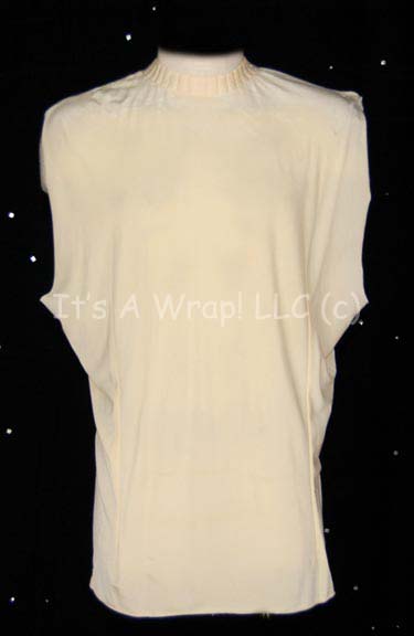 A costume item featured in various Star Trek feature films from “The Wrath of Kahn” to the opening scenes of “Generations. This item is a sleeveless, Starfleet uniform undershirt in Command white with a ribbed collar, clasps at the neck and a zip down the back. |