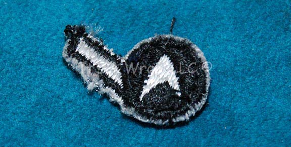 A patch created for crewman grade characters appearing in various episodes of Star Trek: Enterprise. The item is a small black patch with a white Starfleet style emblem centered in a circle and a white flair jutting off to the left. The item measures approx. 1 X 0.5 inches. |