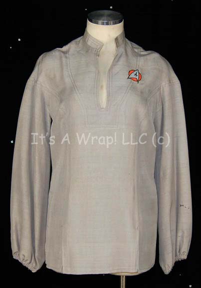 A costume item of the style featured in the first Star Trek feature film. This item is a gray Starfleet uniform shirt featuring a sewn on Starfleet emblem with orange backing denoting the wearer to be a member of the Sciences division. The item has a sewn on Paramount tag … |