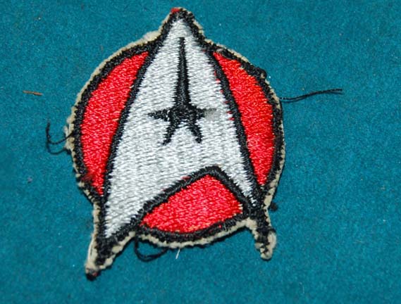 A costume element like those featured in various Star Trek feature films but most likely either “The Wrath of Kahn” or “Search for Spock”. This item is an emblem patch for wear on Starfleet uniforms, it consists of a silver-colored Starfleet emblem, outlined and detailed in black with a red … |