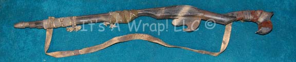 | (Paramount TV, 1994-2001) Constructed of metal tubing for the frame, black and brown-painted molded resin for the handle, and machined metal and brass for the barrel. Also includes attached leather strap. A rare prop, as the Kazon were only seen in a few episodes. Measures approx. 18 inches long. |