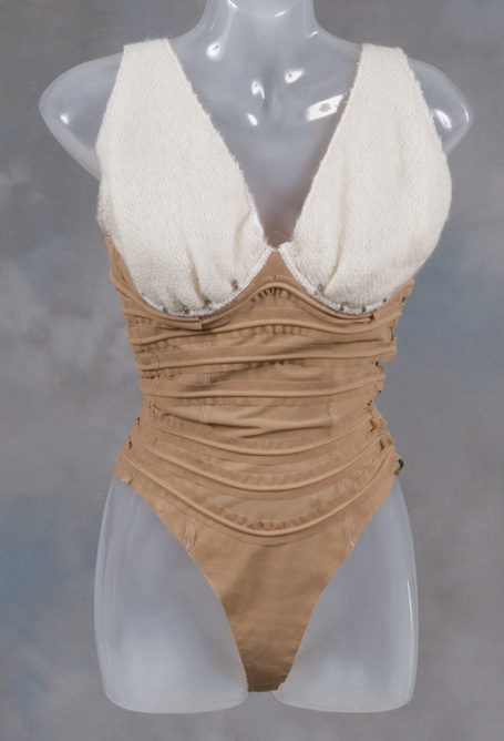 (Paramount-TV, 1994-2001) Light brown colored bustier undergarment with knit cups, worn by Jeri Ryan as “Seven of Nine” on <em>Star Trek: Voyager</em>. |