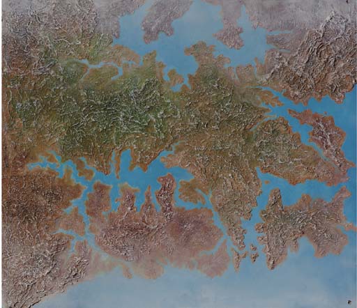 A model of the surface of an Earth-like alien world, the plaster and paint relief model designed to be photographed for visual effects -- <I>42x48in.</I> -- made for <I>Star Trek: Deep Space Nine</I> |