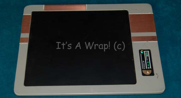 A prop Starfleet PADD (Personal Access Display Device) like those appearing variously in Star Trek episodic television. The item is composed of multiple sheets of acrylic layered together, one with a cut out window made to appear as the ‘face’ of the item and act as a ‘display screen’. The … |
