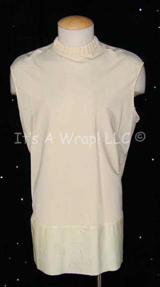 A costume item similar to those featured in Star Trek feature films from “The Wrath of Kahn” until the opening sequences of “Generations”. This item is a sleeveless, Starfleet uniform undershirt in Command White, featuring collar ribbing, a zip up the back with clasps at the neck. |