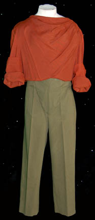 A costume featured in various episodes of Star Trek: Deep Space Nine for wear by Terry Farrel in her portrayal of “Jadzia Dax”. ”. The costume is a black Starfleet uniform jumpsuit with a form fitting elastic waist, ‘away team' gear loops sewn into the waist, quilted gray shoulders, a … |