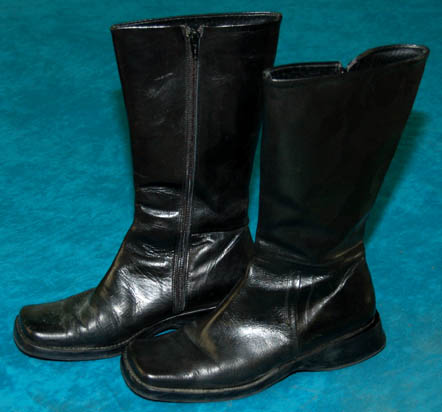 Finally located, a pair of black ladies boots for wear with Starfleet uniforms featured in episodes of Star Trek: Enterprise. These ‘Charles David' name brand boots are shiny, half calf length with subdued heels and inner zips and feature sewn in name brand tags with actor’s names penned onto them … |