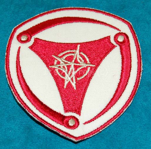 A costume patch featured exclusively in the Star Trek: Enterprise episode “The Shipment” for wear by Xindi-Arboreal characters who were members of “Gralik’s” (John Cothran, Jr.) mining guild. The patch is a white backed fabric layer with a red embroidered border and white Xindi iconographic lettering centered. The item is … |